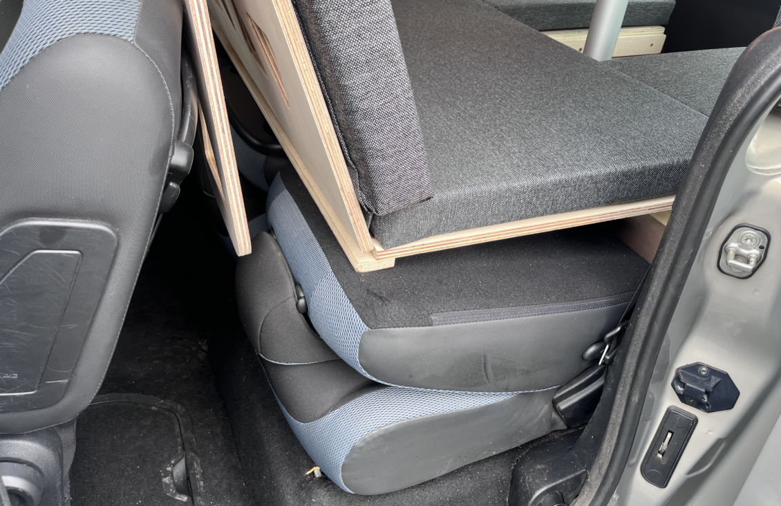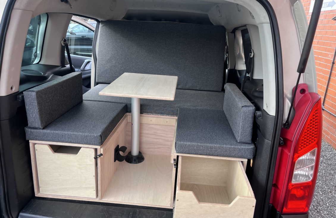 Camper/Dayvan. Sleeps 2. (Still has 5 seats and belts) includes leisure battery with app on phone to monitor. Has solar panel to charge and also has mains hook up when on site. Has storage for double gas ring . All folds away neatly so all 5 seats can be used , bed goes down completely flat. Great multi purpose van . Come and have a look
