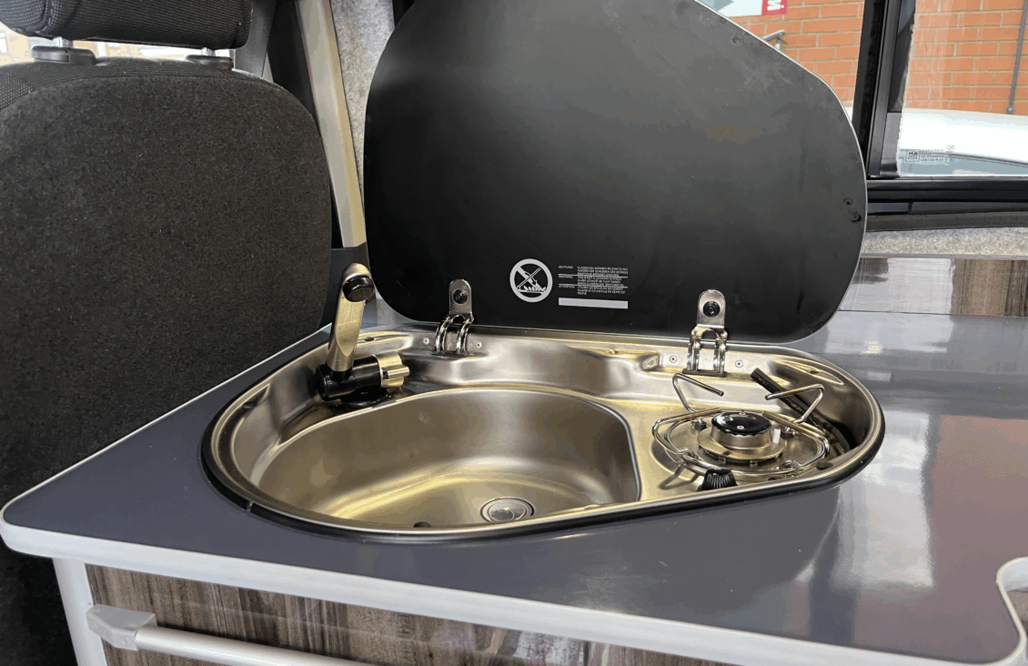 Superb Camper van. Full history. Has to be seen to be appreciated. Rock and roll bed fridge/freezer, sink /cooking ring. Both leisure battery and hook up. Loads of storage and lighting. Includes tent/awning attachment. Stunning conversation. Mot and Warranty included.